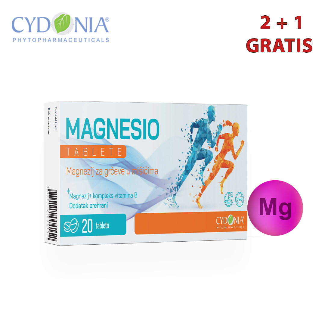 MAGNESIO je dodatak prehrani koji donosi svakodnevnu podršku tvojoj energiji, mišićima i živčanom sistemu. Kombinacija magnezija i kompletnog B kompleksa (vitamini B1–B12) pomaže u smanjenju umora i iscrpljenosti, doprinosi normalnoj funkciji mišića te pomaže tijelu da bolje podnosi stres i napetost. Redovnim uzimanjem, MAGNESIO vraća vitalnost, poboljšava koncentraciju i održava prirodan osjećaj snage i ravnoteže. Idealan je za sve koji žele ostati aktivni, fokusirani i smireni – svaki dan.